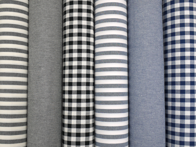 経糸と緯糸を交互に編んでいく平織り生地の一種で、経糸に色の糸、緯糸には白糸を使って織り上げたシャンブレー生地。