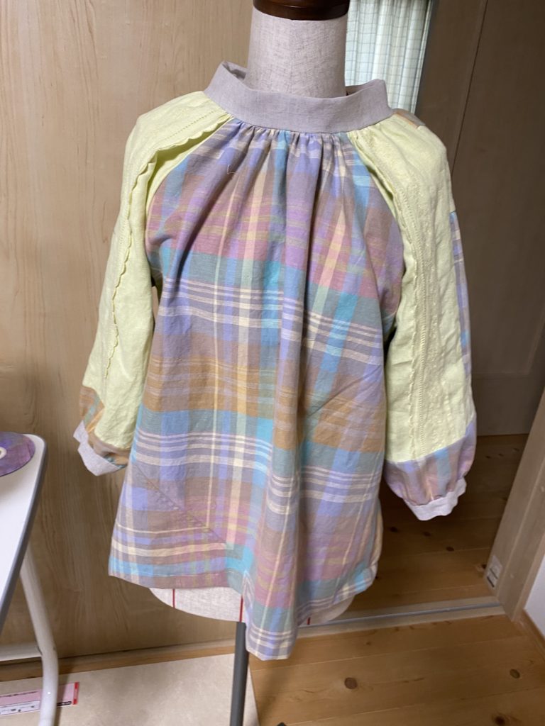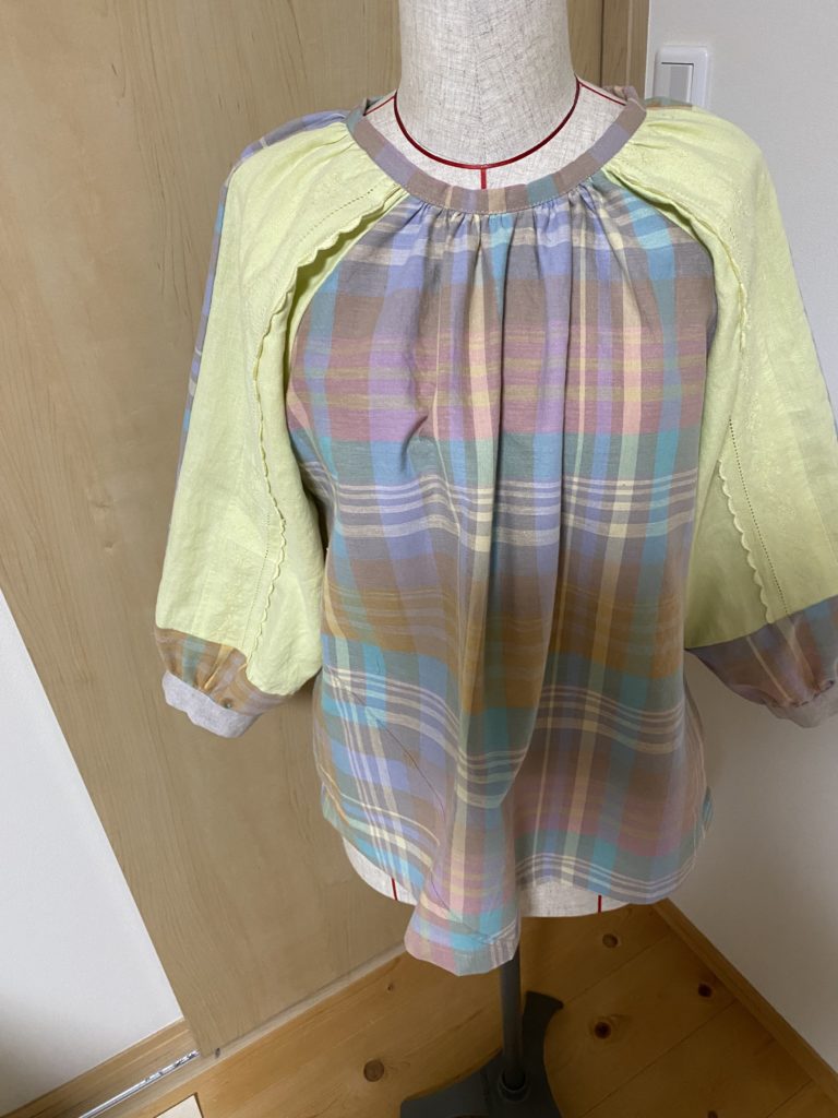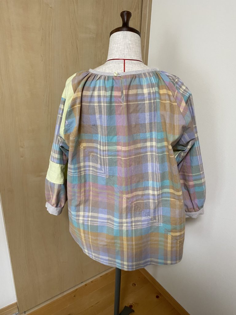 かわいいマドラスチェック(?)柄のスモッグブラウス作りました。