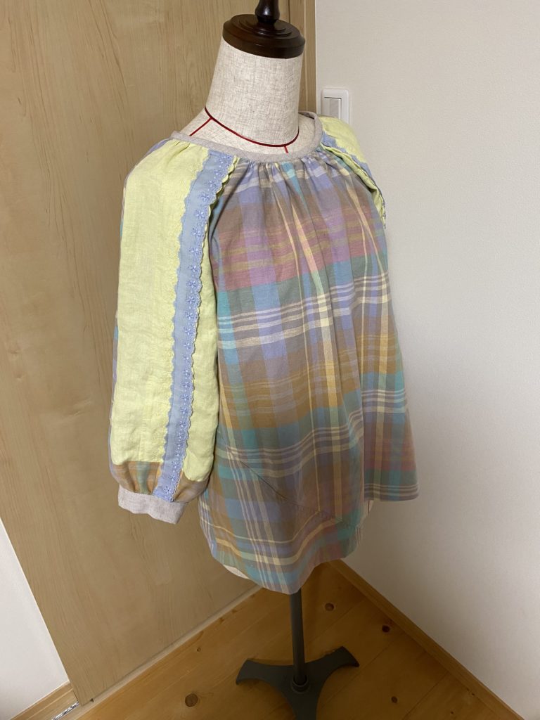 全部は取れなかったので、袖にはリネンのブラウスを合わせました。