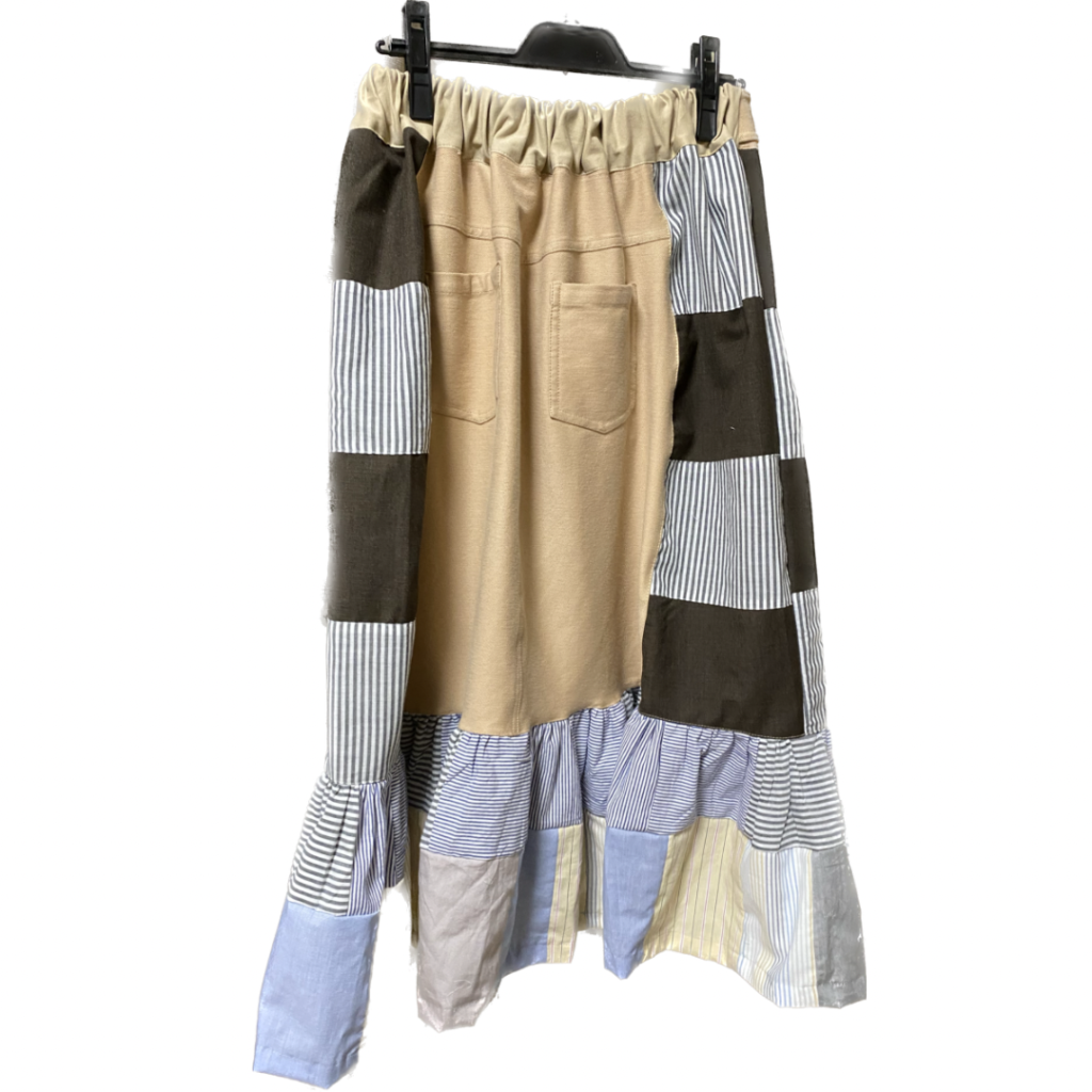 もう一段、ティアードスカートのようにパッチワークした布をくっつけました。
