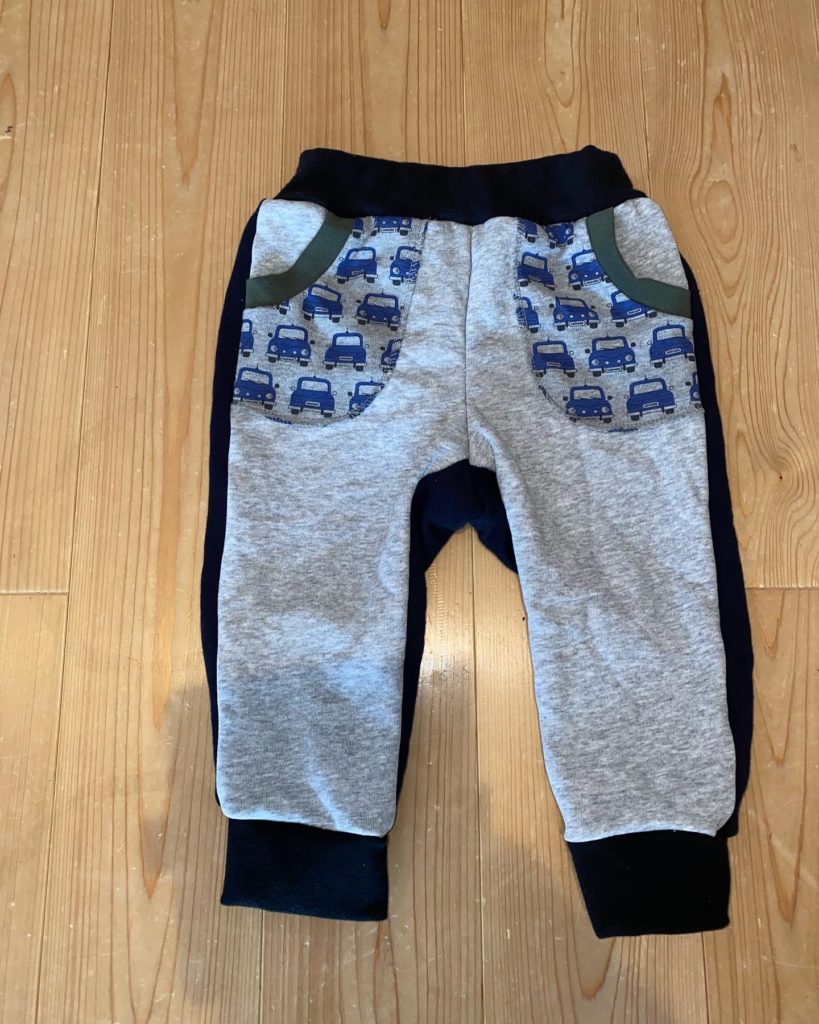 後ろパンツは、前に何か作ったときに残してあったトレーナー地を使いました。