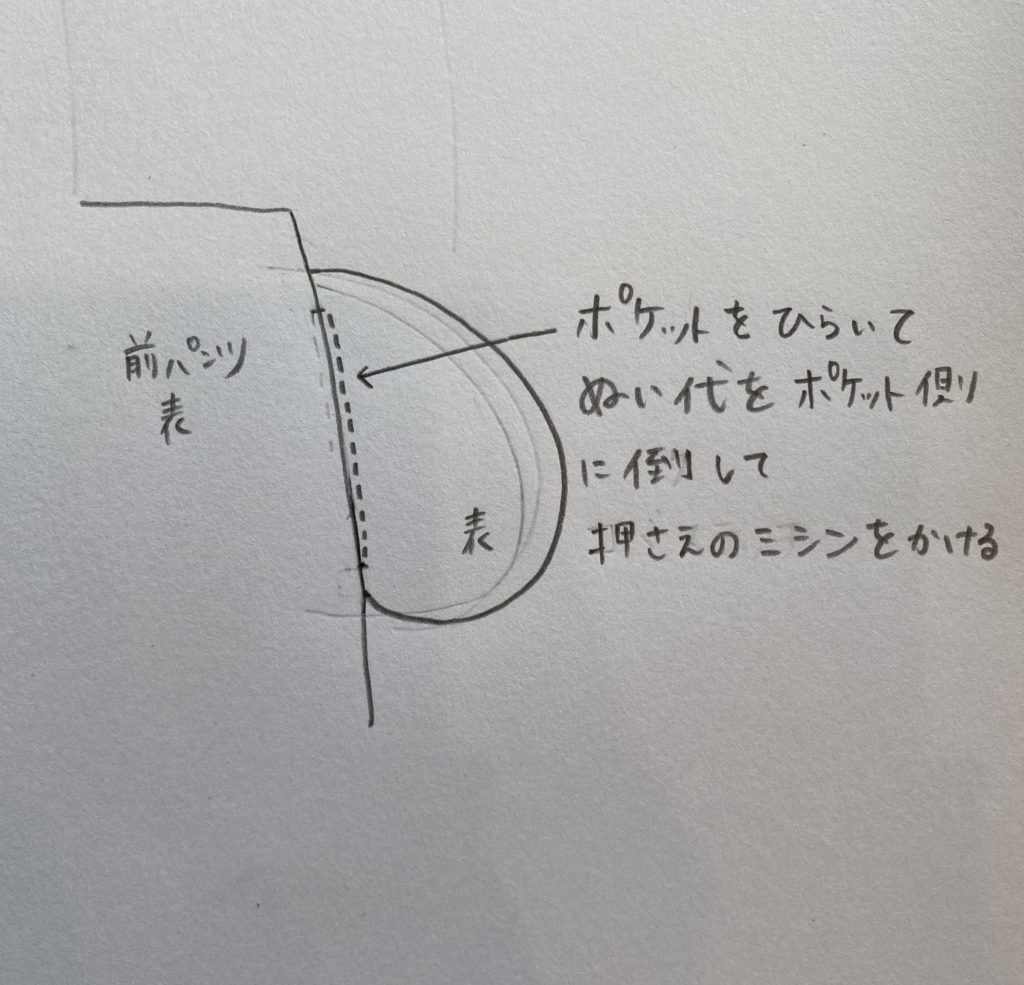 ポケットがないズボンの、シームポケットの付け方