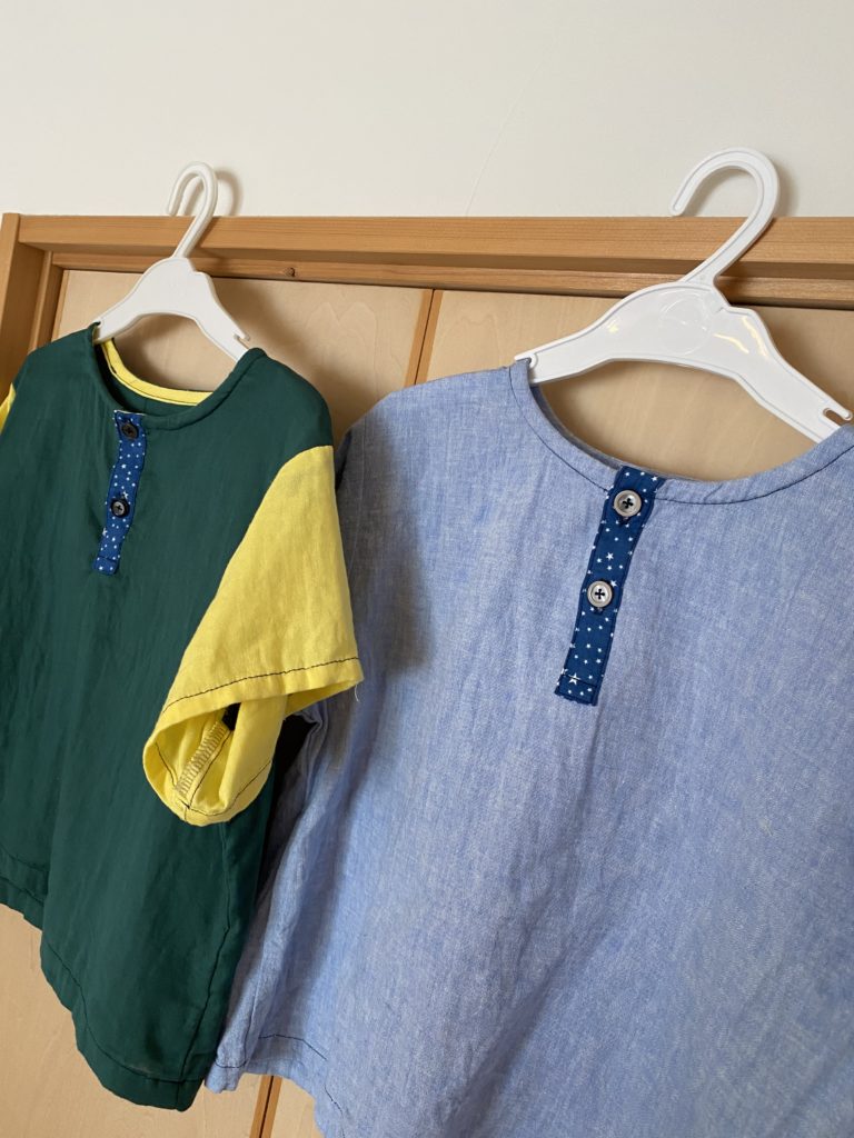 短冊あきのTシャツ、ミシン始めた頃に作って当時3歳だった長男がよく着てくれてました。