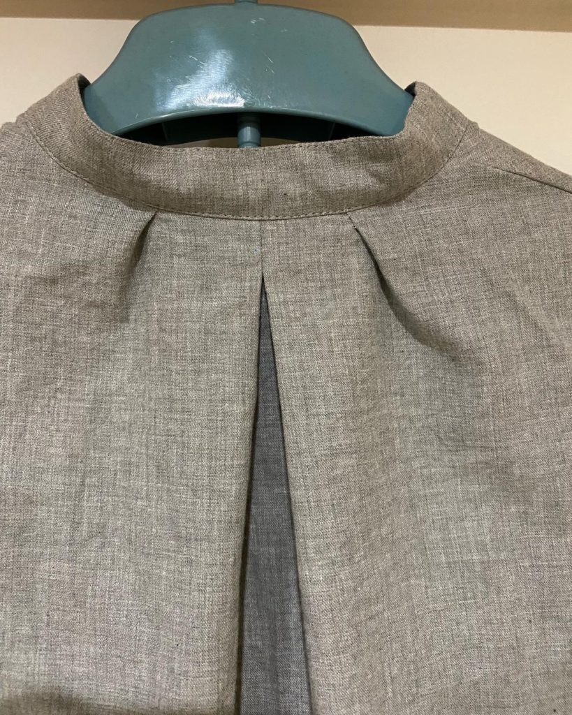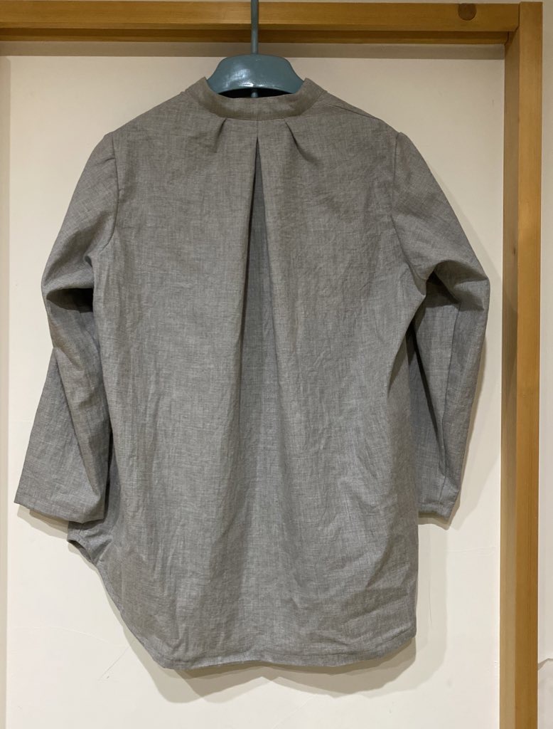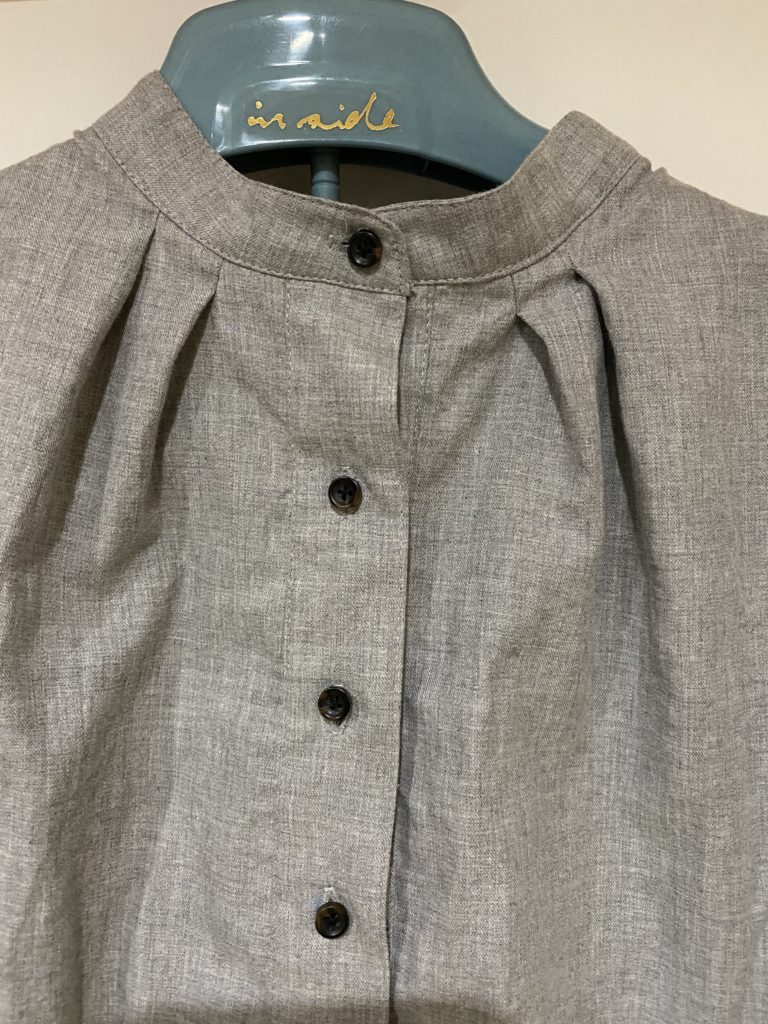 袖はシャツスリーブの型紙がなぜかうまく作れなくて、いせ込むタイプの袖になりました。(セットインスリーブ?)