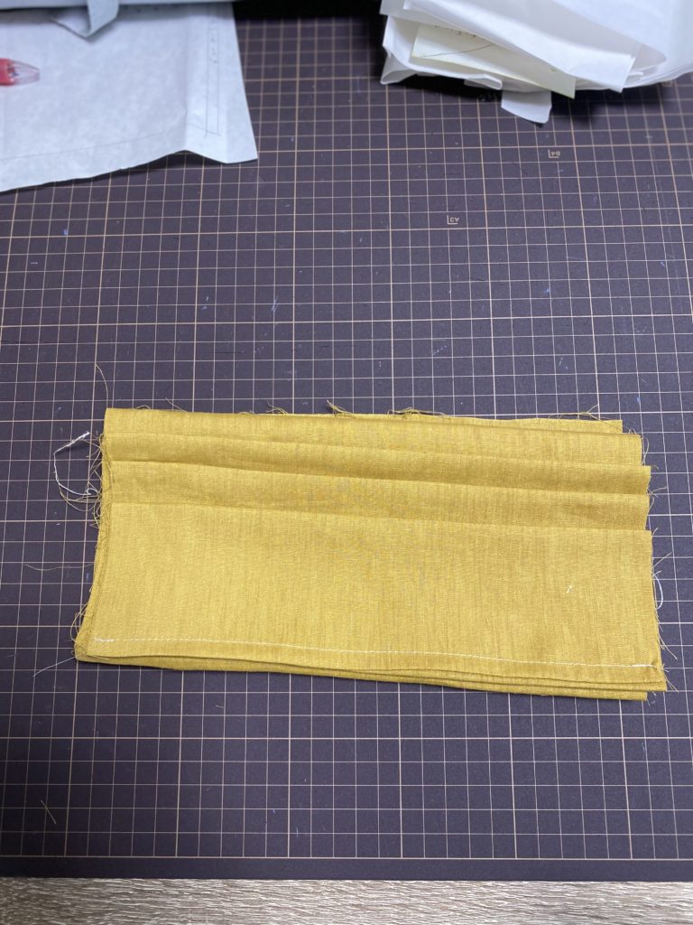 縫い代部分は先に二つ折りか三つ折りしてミシンしておきます。