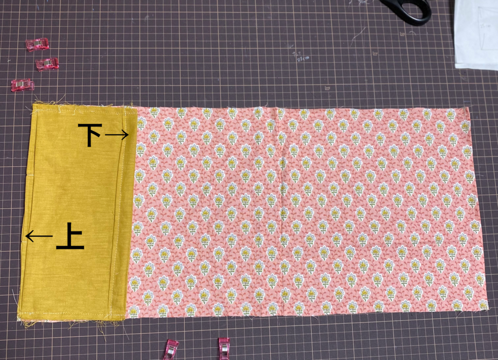 そしてこのように内側の布と蓋になる布を中表に合わせます