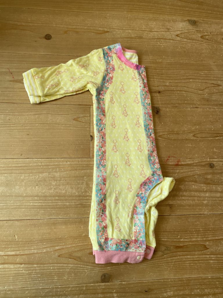 試しにいらないニット生地を使って作ってみたのですが、袖もぴったり合ったしズレる部分がなかったので良しとします!