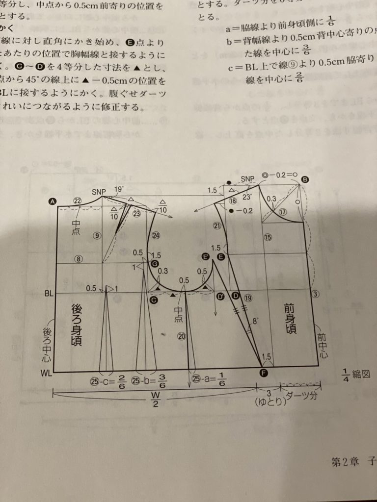次に袖の製図ですが、本を見ながら