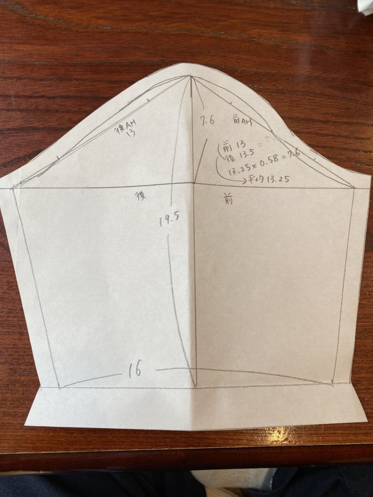 そして出来上がった袖の製図がこちら。
