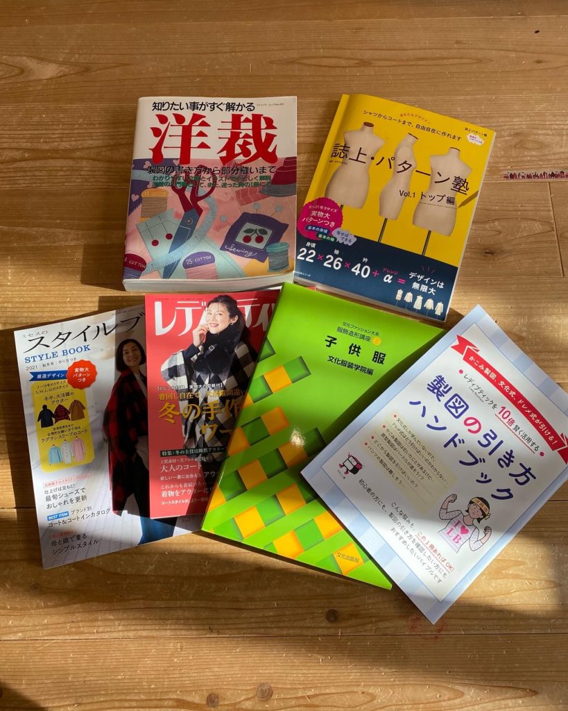 とりあえず独学でどこまでできるか、洋裁本を買い込んで勉強はじめました。