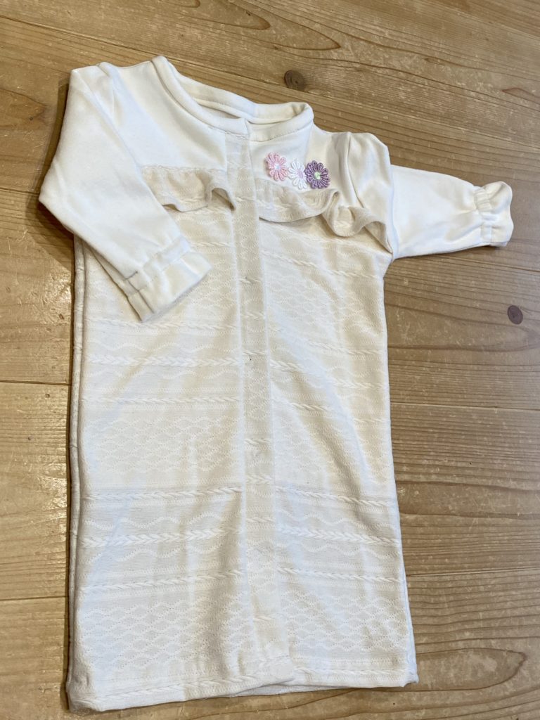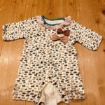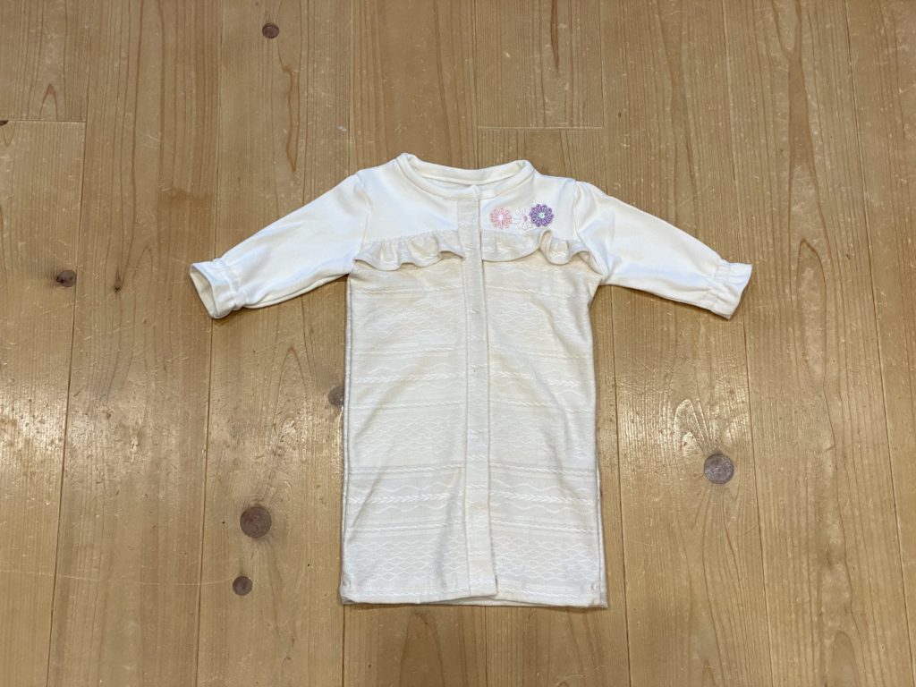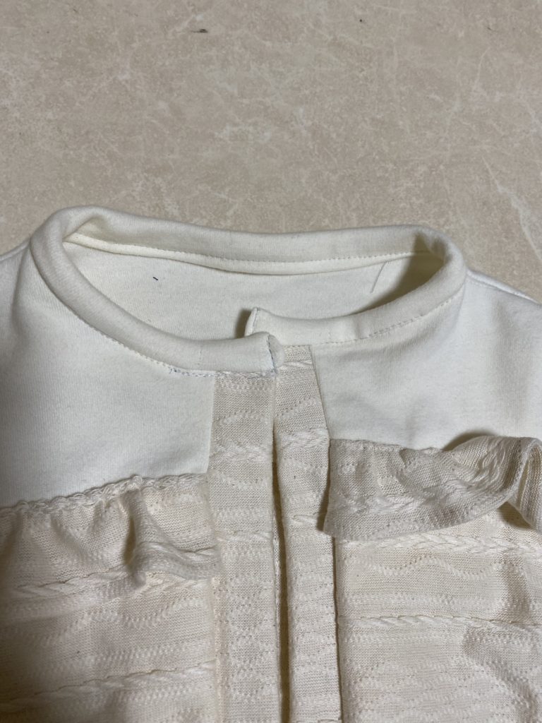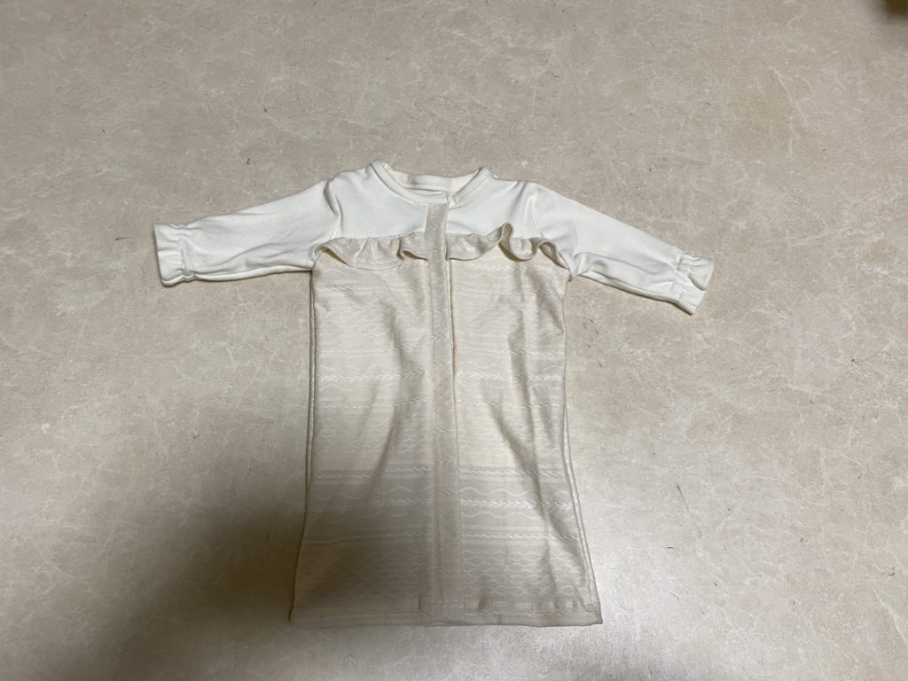スカート部分をもっと広げて作れば、1歳くらいになった時もワンピースとして着れたなぁと少し後悔。その時はまた脇に布を足してスカートっぽくしようかな。