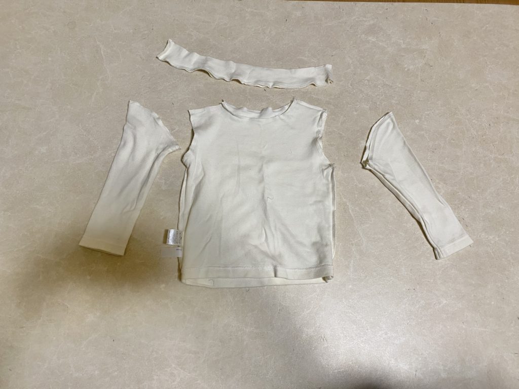 息子が1歳の時に着た白無地のロンTがあったので、それをまずは解体することに。
